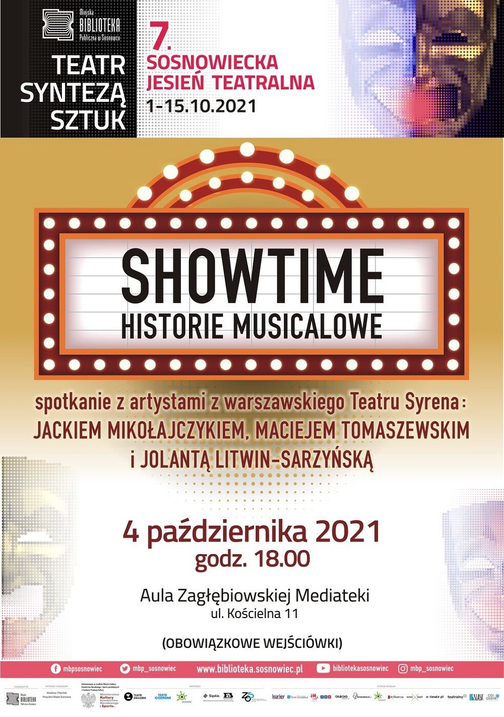 4 października 2021 o godz. 18.00 Miejska Biblioteka Publiczna w Sosnowcu – organizator 7. Sosnowieckiej Jesieni Teatralnej – serdecznie zaprasza do Auli Zagłębiowskiej Mediateki (ul. Kościelna 11) na spotkanie „Showtime. Historie musicalowe!”, poświęcone historii musicalu, prowadzone przez dyrektora artystycznego Teatru Syrena - Jacka Mikołajczyka. Wstęp wolny – obowiązują bezpłatne wejściówki.