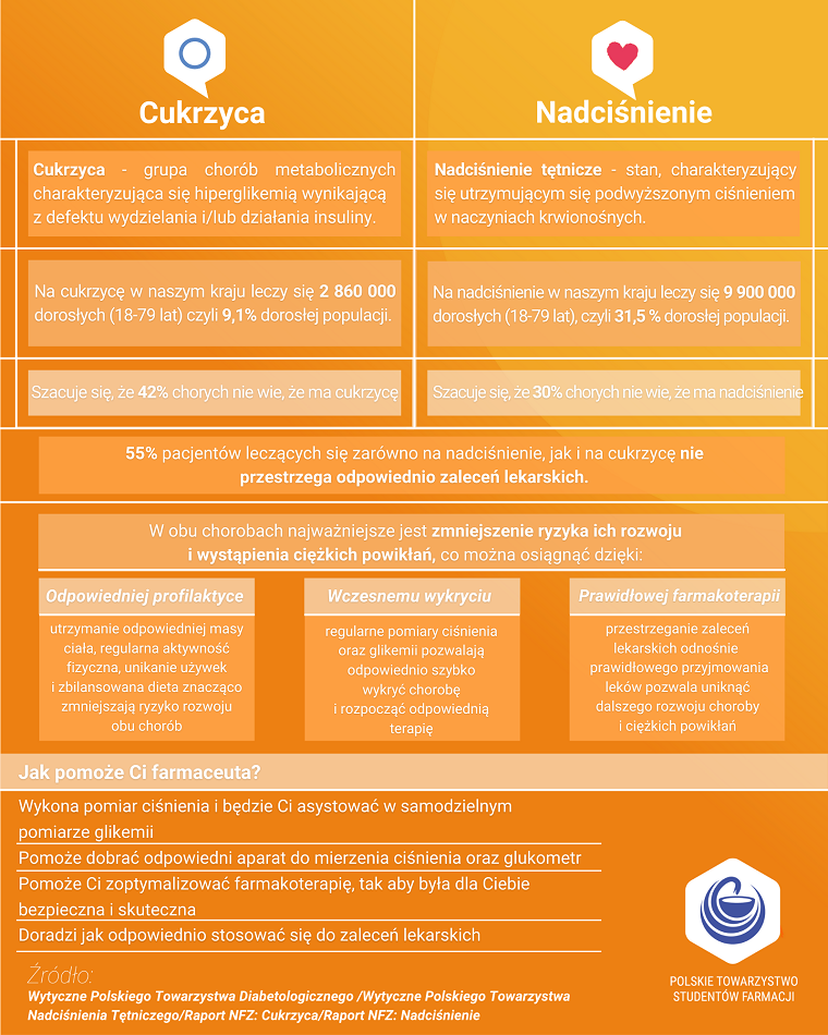 Akcja “Skonsultuj z Farmaceutą” to inicjatywa Polskiego Towarzystwa Studentów Farmacji, mająca na celu budowanie świadomości społecznej w zakresie profilaktyki zdrowotnej. W tym roku ze względu na trwającą pandemię, wydarzenie musiało zostać przeniesione w całości do sieci. W tej edycji skupimy się na 3 chorobach - cukrzyca, nadciśnienie tętnicze i przewlekła obturacyjna choroba płuc. Właściwa akcja odbędzie w dniach 2 - 6 grudnia, jednakże już teraz systematyczne publikowane są różne treści edukacyjne na stronie wydarzenia na Facebooku.
