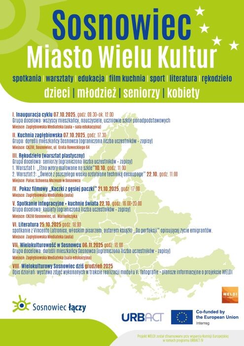 Cykl wydarzeń „Sosnowiec – Miasto Wielu Kultur” jest realizowany w ramach projektu „WELDI” współfinansowanego ze środków Programu UE URBACT IV.