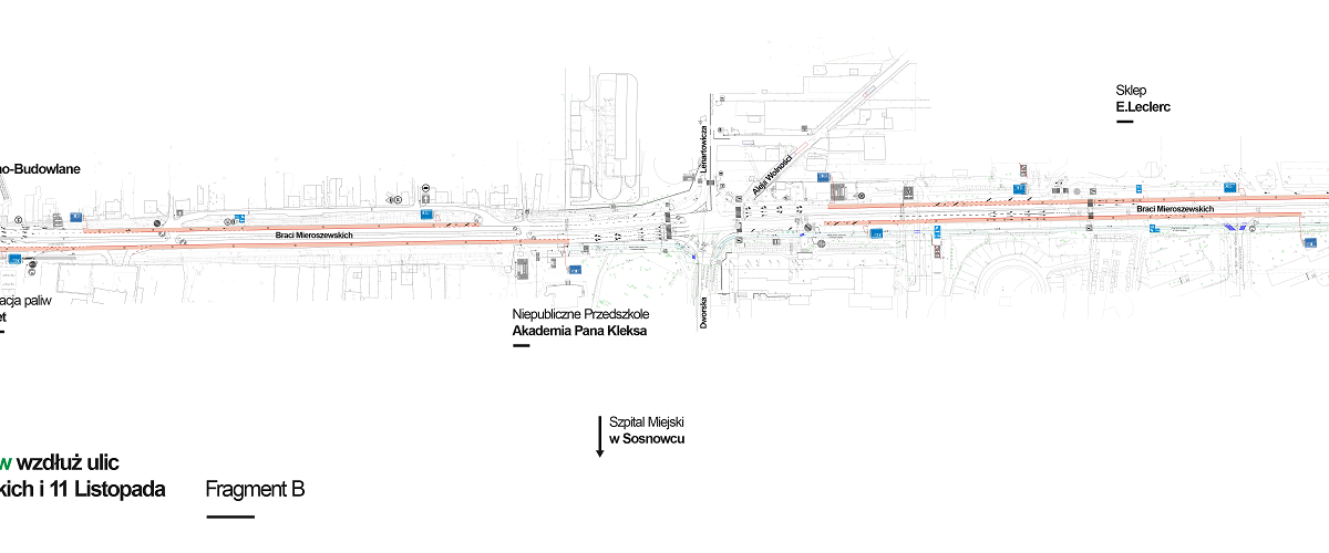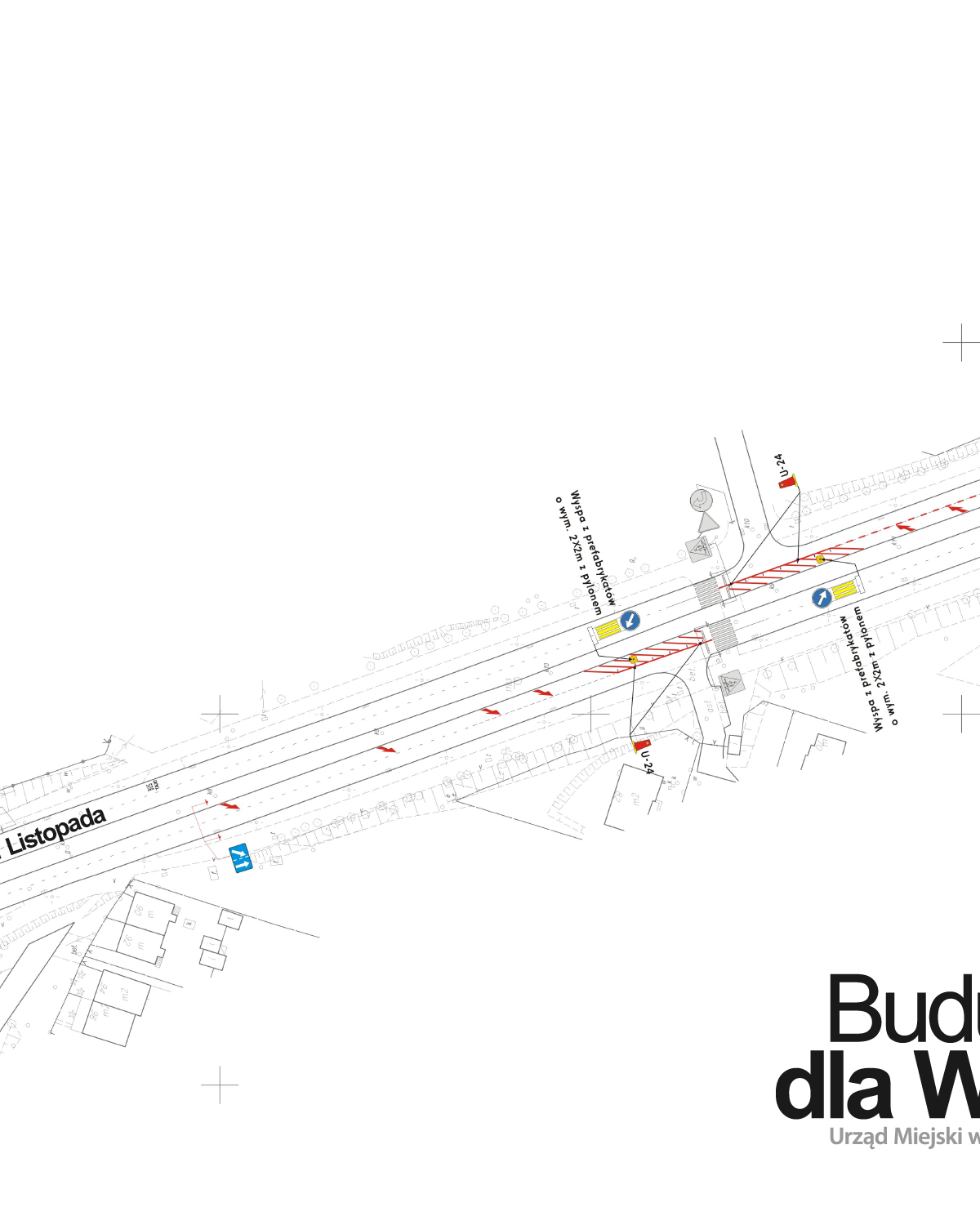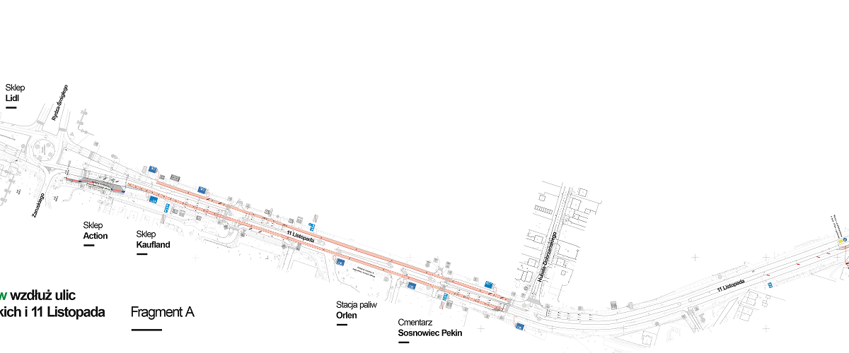 Zmiany będą również dotyczyły odcinka ulicy 11 Listopada od skrzyżowania z ulicą Hubala-Dobrzańskiego do ronda Żołnierzy Wyklętych. Na tym odcinku droga w obrębie przejścia dla pieszych zostanie zwężona do jednego pasa. Kierowcy poruszający się lewym pasem, będą musieli zjechać na prawy. Ograniczenie będzie wprowadzone przy pomocy wymalowania martwego pola na jezdni oraz montażu separatorów przytwierdzanych do nawierzchni drogi. Takie ograniczenia będą obowiązywały na obu kierunkach.