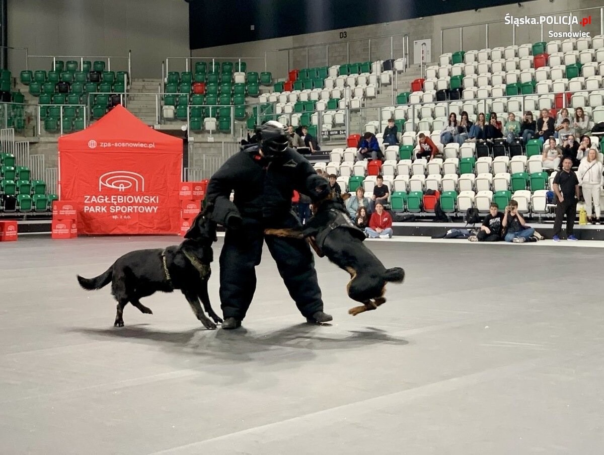 Podczas kolejnej części Dnia Bezpieczeństwa odbyły się pokazy służb mundurowych, w których brali udział sosnowieccy przewodnicy psów służbowych oraz ich czworonożni przyjaciele. Policjanci przygotowali pokaz z udziałem pozoranta, który symulował ucieczkę przed policjantami po popełnieniu przestępstwa oraz pokaz tresury. Opowiedzieli widowni o swoich osiągnięciach i codziennych czynnościach.