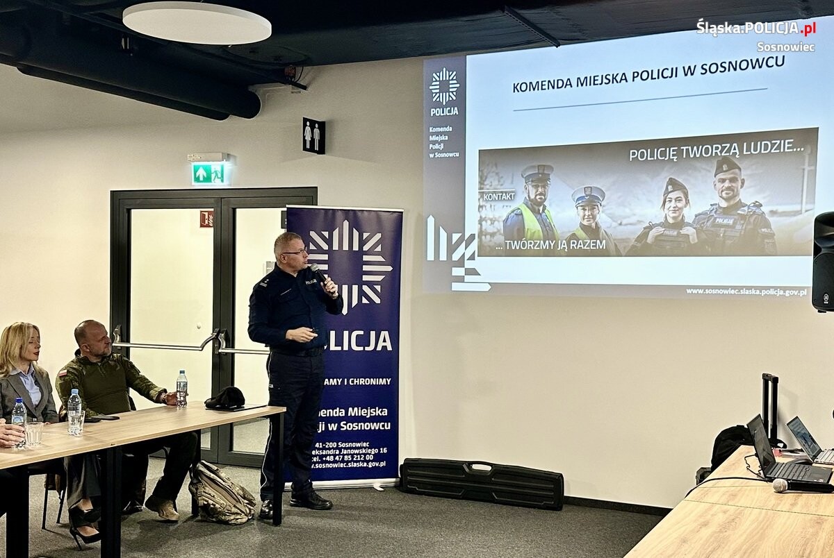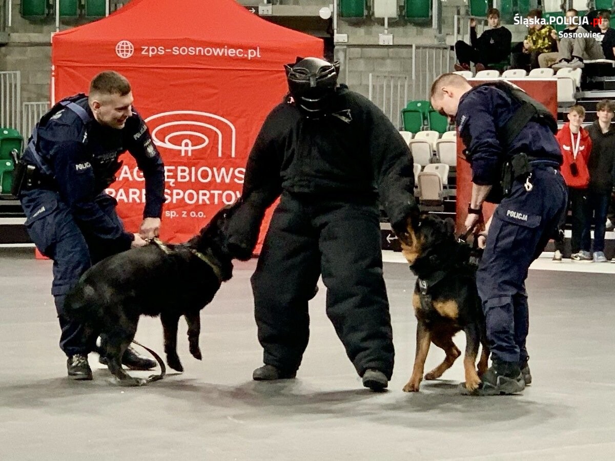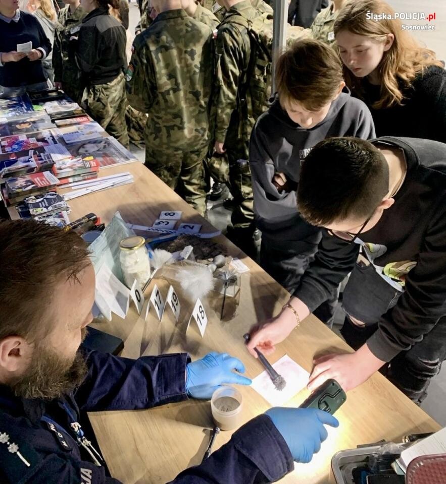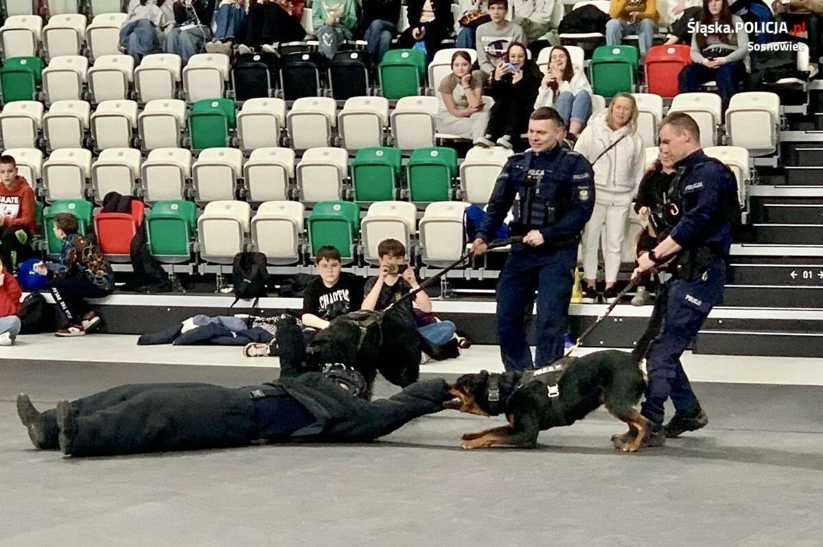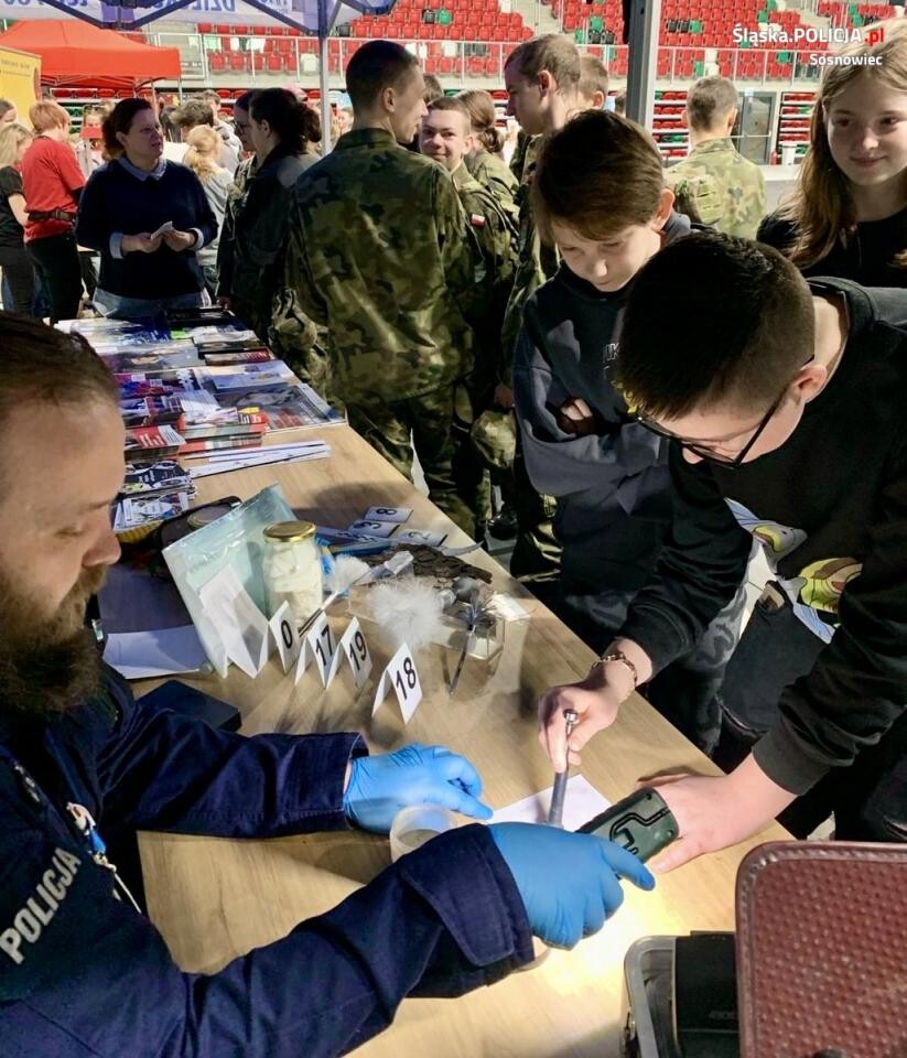 Na arenie uczniowie mieli okazję porozmawiać z sosnowieckimi policjantami, którzy przygotowali dla nich stoisko profilaktyczne. Młodzież mogła zobaczyć sprzęt, z którego na co dzień korzystamy oraz dowiedzieć się, jak wygląda służba technika kryminalistyki. Mundurowi zachęcali uczniów do wstąpienia w nasze szeregi. Opowiedzieli zainteresowanym osobom, jakie wymagania musi spełniać kandydat do służby w Policji, a także, jak wygląda rekrutacja i służba w poszczególnych pionach sosnowieckiej komendy. Młodzież mogła również obejrzeć z bliska radiowozy oraz motocykle służbowe.