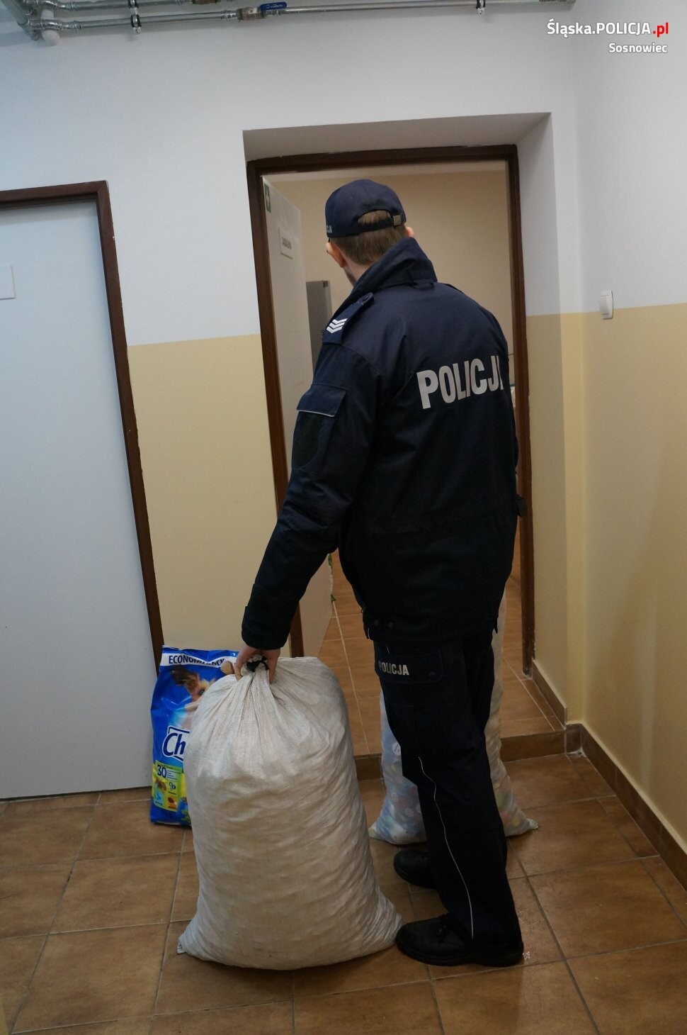 Policjanci i strażnicy miejscy zbierają plastikowe nakrętki, karmę, smycze oraz kołdry i koce - wszystko to, co pomoże bezdomnym zwierzętom przetrwać najtrudniejszy dla nich okres, jakim jest zima. W sosnowieckim schronisku stale przebywa około 150 psów. Tym razem dary do schroniska przekazali sierż.szt. Wojciech Dobczyński wraz z głównymi organizatorami bieżącej zbiórki: sierż szt. Maciejem Kopij z Wydziału Prewencji sosnowieckiej komendy oraz mł. strażnik Ewą Gała ze Straży Miejskiej. Funkcjonariusze obu formacji systematycznie gromadzą plastikowe nakrętki, karmę, smycze, obroże, zabawki oraz tak ważne koce i kołdry, które pomagają przetrwać bezdomnym zwierzętom zimę.