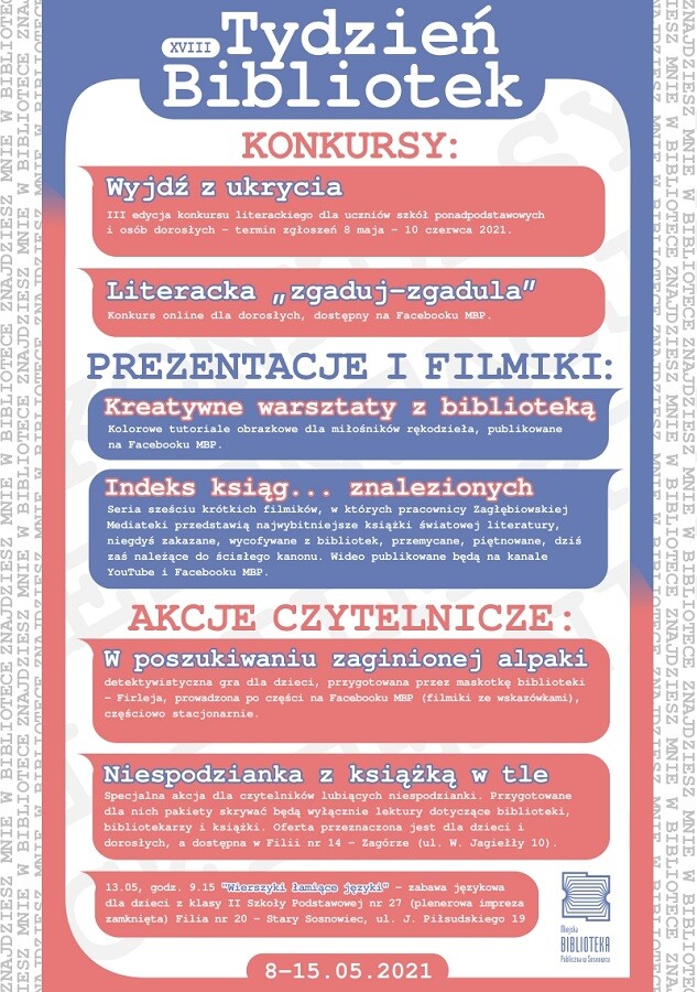 XVIII Tydzień Bibliotek 8-15.05.2021 „Znajdziesz mnie w bibliotece!”