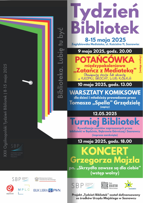 Tegoroczne hasło akcji: „Biblioteka. Lubię tu być” jest inspiracją nie tylko w kontekście projektu, ale także wyzwaniem, któremu biblioteki starają się nieustannie sprostać. Zagłębiowska Mediateka, podejmując to wyzwanie, zaplanowała w tym czasie całą gamę różnorodnych przedsięwzięć. Udział we wszystkich imprezach jest bezpłatny.