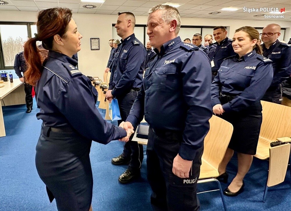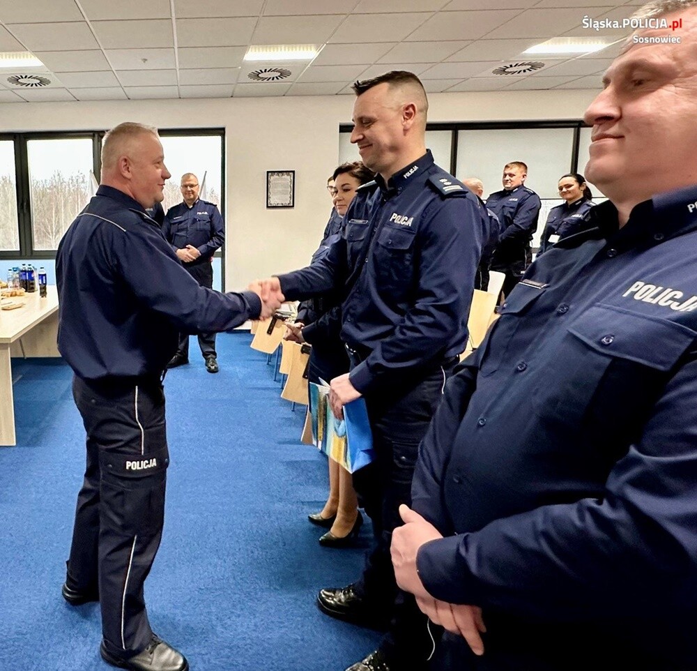 W imieniu policyjnej społeczności sosnowieckiej Policji – Komendant Miejski Policji w Sosnowcu, młodszy inspektor Sławomir Zagrobelny oraz jego Zastępcy, przekazali młodszemu inspektorowi Tomaszowi Woldonowi – Komendantowi Komisariatu Policji III w Sosnowcu oraz aspirantowi sztabowemu Jackowi Przybylikowi – Naczelnikowi Wydziału Kryminalnego Komisariatu Policji III w Sosnowcu słowa podziękowania za wieloletnią, sumiennie pełnioną służbę, trud, poświęcenie oraz duże zaangażowanie. Podczas spotkania nie zabrakło również koleżanek i kolegów, którzy chcieli podziękować za wieloletnią współpracę.
