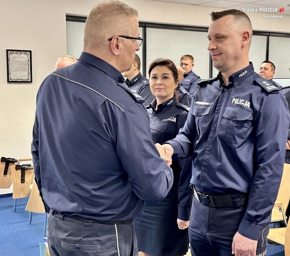 Wczoraj w Komendzie Miejskiej Policji w Sosnowcu odbyło się pożegnanie odchodzących na emeryturę Komendanta Komisariatu Policji III w Sosnowcu, młodszego inspektora Tomasza Woldona oraz Naczelnika Wydziału Kryminalnego Komisariatu Policji III w Sosnowcu, aspiranta sztabowego Jacka Przybylika. Komendant Miejski Policji w Sosnowcu, młodszy inspektor Sławomir Zagrobelny razem z Zastępcami podziękowali policjantom za kolejno 24 i 25 lat w policyjnym mundurze.