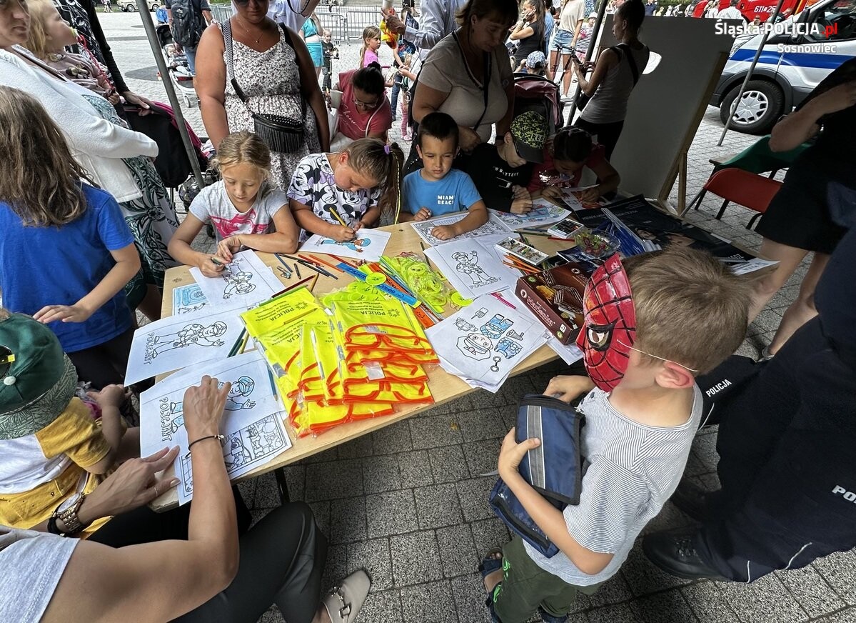 W trakcie imprezy na placu przed kasami zorganizowano konkurs dla dzieci. Na odwiedzających czekały stoisko profilaktyczne KMP w Sosnowcu z daktyloskopią, sprzętem policyjnym, radiowozem i policyjnym motocyklem, stoisko profilaktyczne Służby Więziennej, gdzie można było podziwiać sprzęt i wyposażenie Służby Więziennej. Można było również poznać elementy sprzętu specjalistycznego Straży Pożarnej i obejrzeć wóz bojowy. Były także pokazy pierwszej pomocy. Dla spragnionych poczęstunek przygotowały wprost z saturatora Sosnowieckie Wodociągi. Wszystkie te wydarzenia były doskonałą okazją do rozmów o bezpieczeństwie w ramach kampanii Bezpieczne Wakacje. Nie zabrakło chętnych, którym policjanci i pracownicy Komendy Miejskiej Policji w Sosnowcu, a także mundurowy z Wydziału Doboru i Szkolenia Komendy Wojewódzkiej Policji w Katowicach - opowiadali o służbie w Policji — warunkach rekrutacji i specyfice każdego z policyjnych pionów.