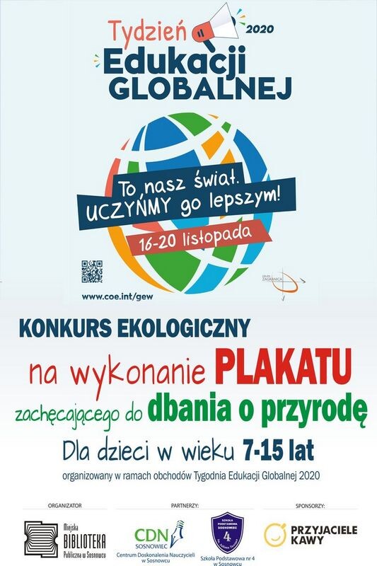 Miejska Biblioteka Publiczna w Sosnowcu zaprasza uczniów szkół podstawowych do udziału w ekologicznym konkursie plastycznym, organizowanym w ramach obchodów Tygodnia Edukacji Globalnej 2020 w Zagłębiowskiej Mediatece.