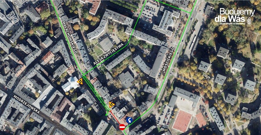 Na dobre rozpoczęła się przebudowa torowiska tramwajowego i ulicy Małachowskiego. Z tego powodu wjazd w ulicę od strony skrzyżowania z ulicami Mościckiego i Kościelnej jest niemożliwy.