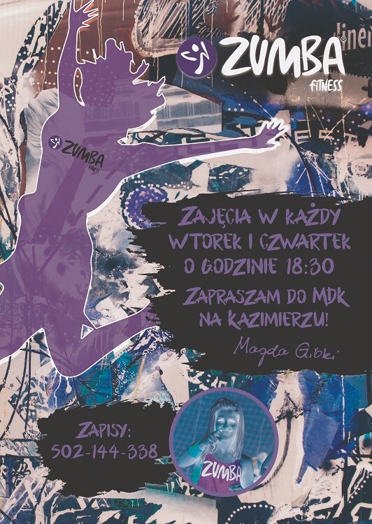 Miejski Dom Kultury serdecznie zaprasza na zajęcia ZUMBY. Spotkania we wtorki oraz czwartki o godz. 18:30.