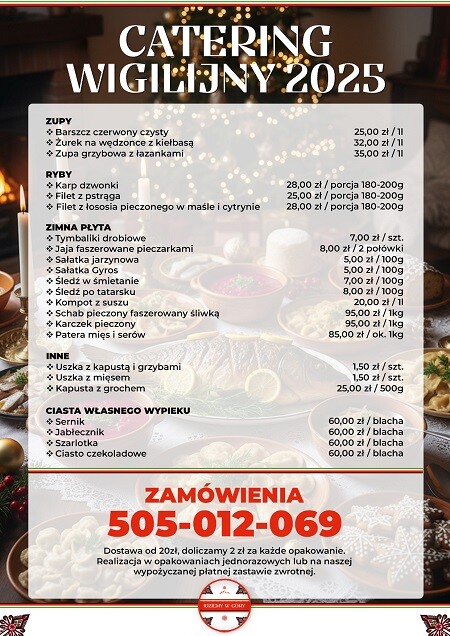 Pełna oferta cateringu dostępna jest tutaj: https://www.iwgory.pl/informacje/catering-wigilijny